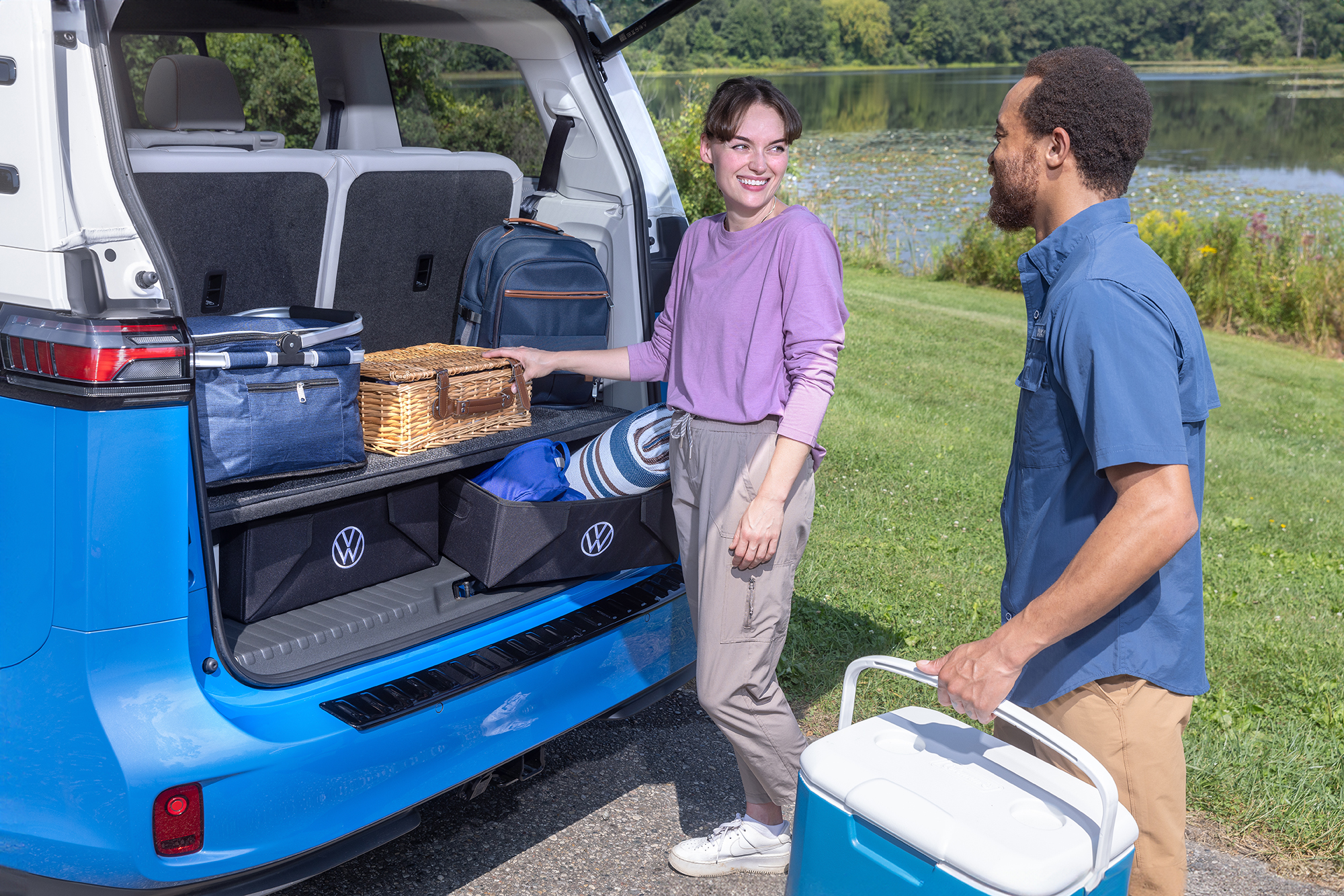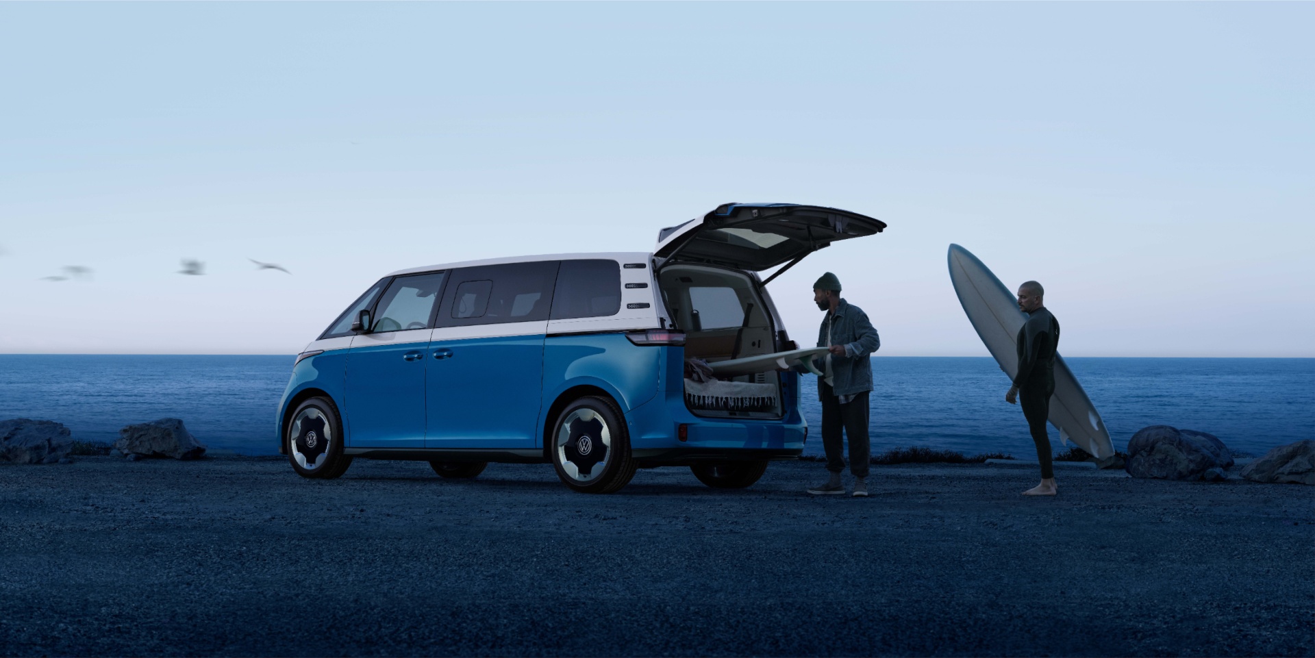 The ID. Buzz may be electric, but it still embodies the spirit of the original. With three rows that offer six and seven seat configurations, it's spacious enough to fit your whole crew. While taking you just about wherever you want to go. And that available two-tone paint? It's a nod to the vintage style that made the bus so recognizable. So go ahead, pack up and hit the open road. The ID. Buzz is ready for any adventure.